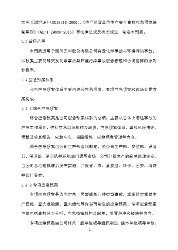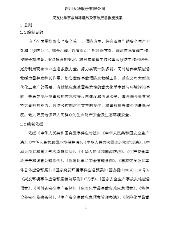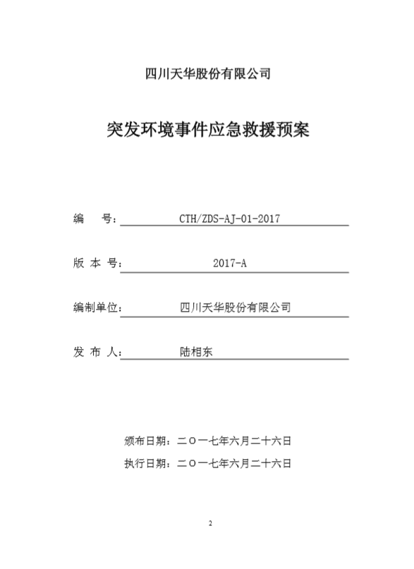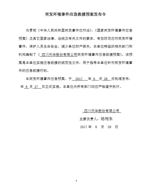 四川天华股份有限公司突发环境事件应急预案