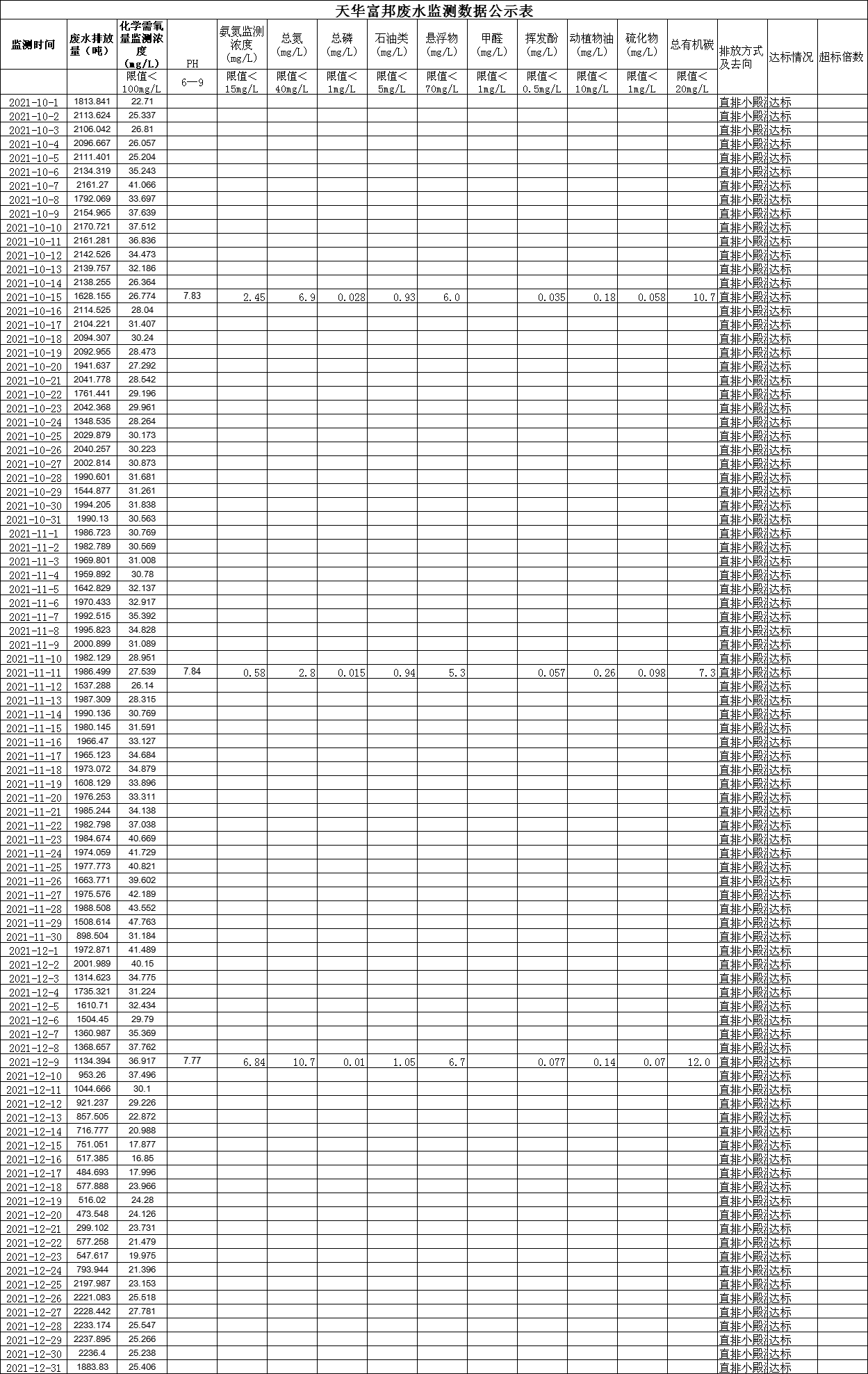 四川天华富邦有限责任公司10月11月12月废水监测公示