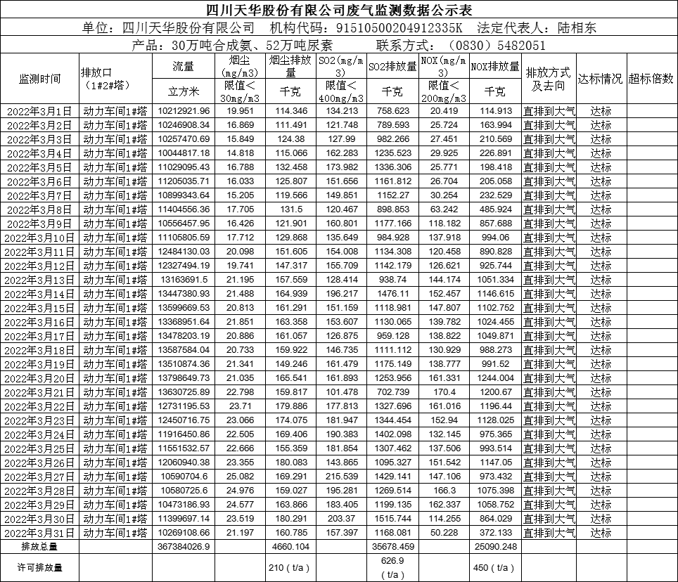 四川天华股份有限公司2022年3月废气监测公示