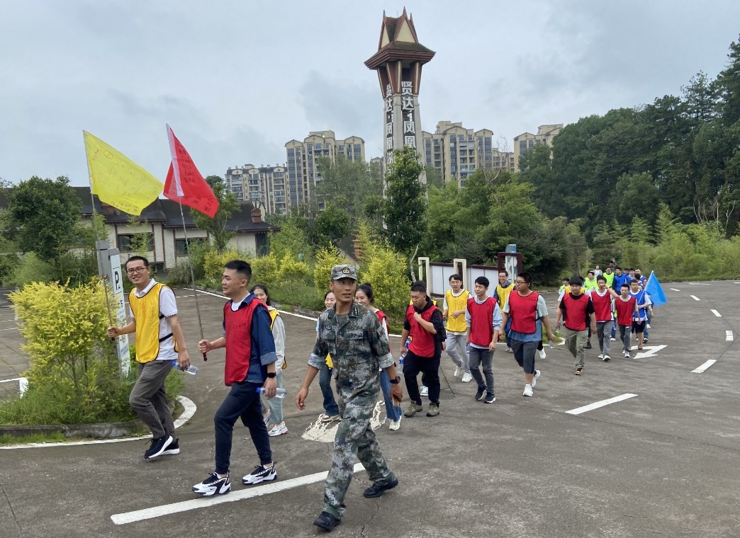 午休后,大家冒着绵绵细雨,进行徒步拉练活动,开启一场体力与耐力的较量。一路上队员们比意志、比耐力、比体能,相互鼓励。
