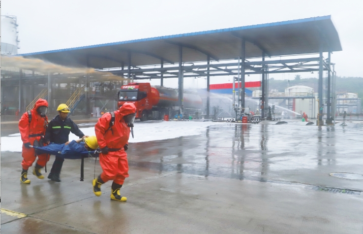 接到报警后,集团立即启动综合应急预案,围绕消防救援、泄漏控制、现场堵漏、医疗救援以及舆情防控等措施展开演练。