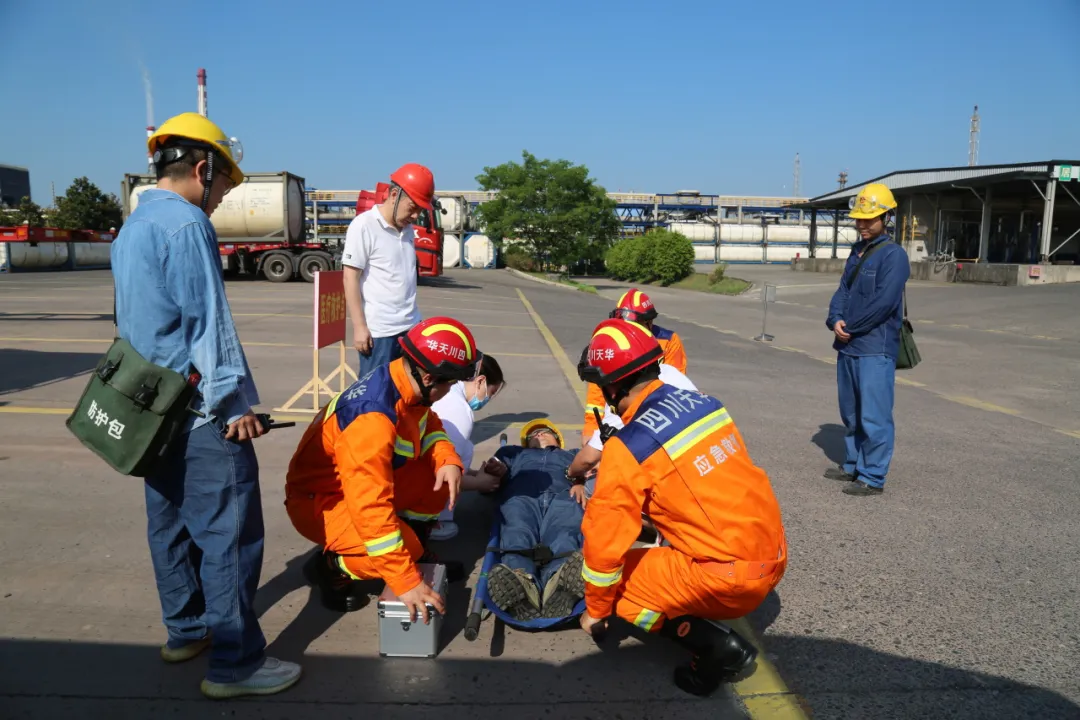 演练模拟县国防动员办公室通知集团区域可能遭受敌对势力空袭,要求集团做好装置紧急停车和应急疏散准备工作。集团启动突发事故Ⅰ级(红色)预警响应,紧急停车并疏散相关人员。演练还模拟集团聚四氢呋喃装置遭受敌对势力空袭,中间罐区着火、装车人员受伤等情况,应急救援中心紧急处置火情,医疗救护人员抢救受伤人员。
